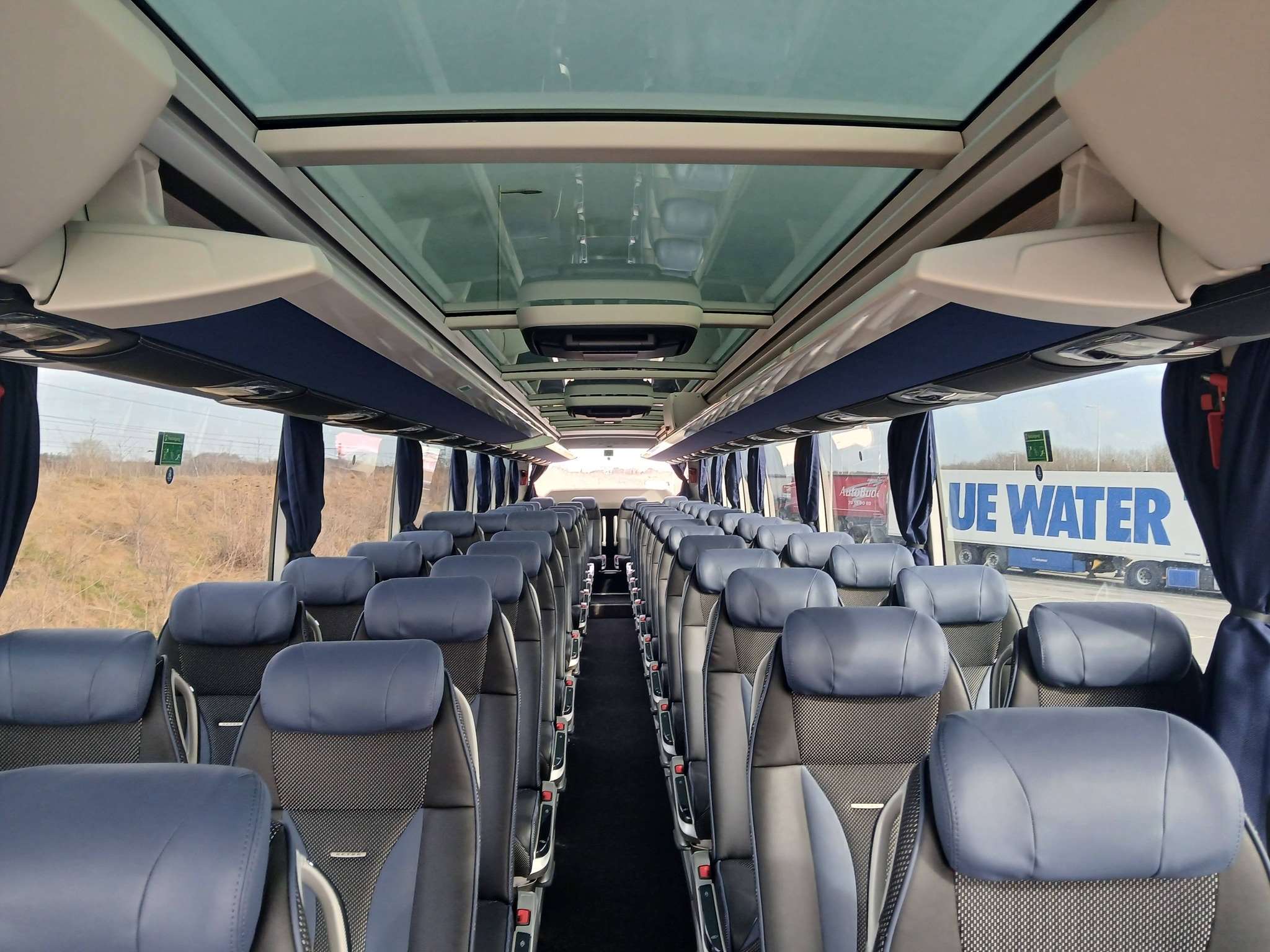 Vores nye SETRA S517 HDH TopClass er udstyret med forskudte stole med justerbare nakkestøtter, 220 V stik ud for hver stolerække og et stort panorama glastag.