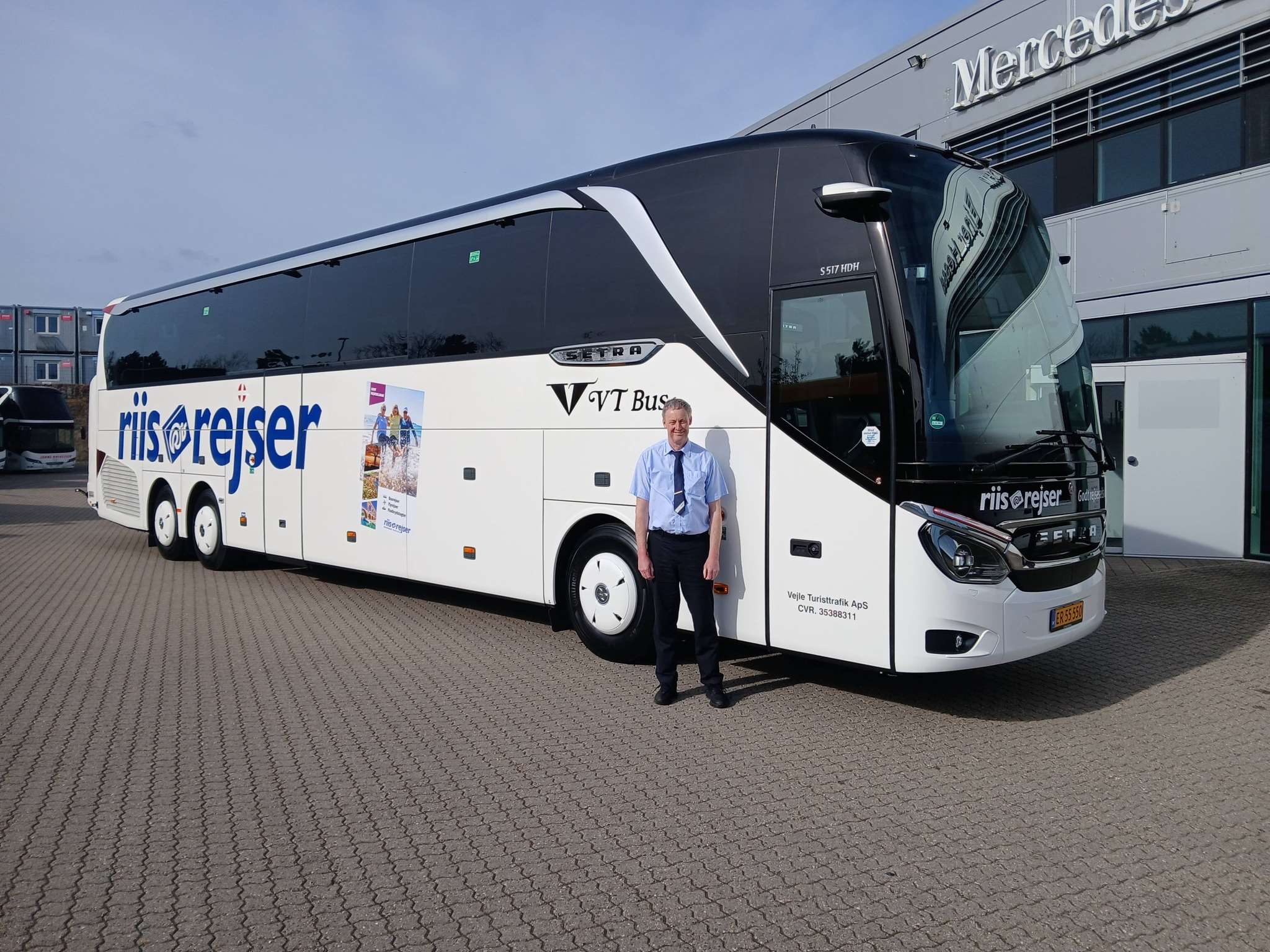 I samarbejde med Riis Rejser har vi investeret i to fabriksnye SETRA S517HDH TopClass-busser, der primært skal køre med selskabets rejsegæster. Gæsterne kan glæde sig til en komfortabel rejseoplevelse i turistbusserne med plads til 54 passagerer og en rejseleder.